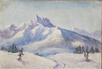1330 Dobbs, Muriel. (Rosalind Heyworth Potter) [1865-1949] Dents du Midi from Villars. c1900 watercolour on grey paper. not signed - from a collection of her work. 32 x 47 cms.